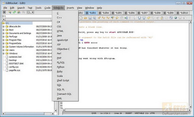 Perl, XML, C, C++, Shell Script。包括許多工具,可幫助用戶編寫代碼,諸多功能如語