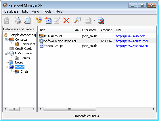 這個口令保護程式允許你儲存註冊,口令,PIN,信用卡卡號和他們的存取碼,和任何其他保密的資訊。你能夠創建被加密的資料庫,每一個以它的自己的訪問口令。